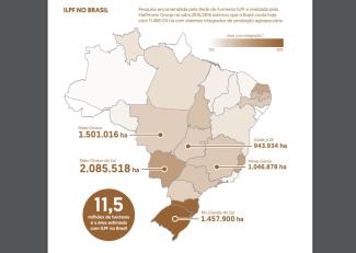 A pesquisa encomendada pela Rede de Fomento ILPF foi realizada pelo Kleffmann Group na safra 2015/2016 e estimou que o Brasil conta hoje com 11.468.124 ha com sistemas integrados de produção agropecuária. A ILPF é uma estratégia de produção agropecuária que integra diferentes sistemas produtivos, agrícolas, pecuários e florestais, dentro da mesma área. Pode ocorrer em cultivo consorciado, em rotação ou sucessão, de forma que haja interação entre os componentes, gerando benefícios mútuos. O sistema pode ser adotado pequenos, médios e grandes produtores, de diferentes formas: ILP - Lavoura-pecuária; ILF - Lavoura-floresta ILF; IPF - Pecuária-floresta e ILPF - Lavoura-pecuária-floresta.