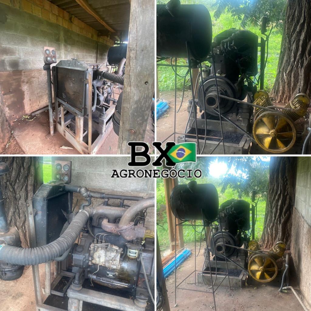 Motor MWM D 229, três cilindros diesel, montado em chassi em viga U, acoplado em compressor de 25 pés. Motor para bombeamento em poço artesiano.