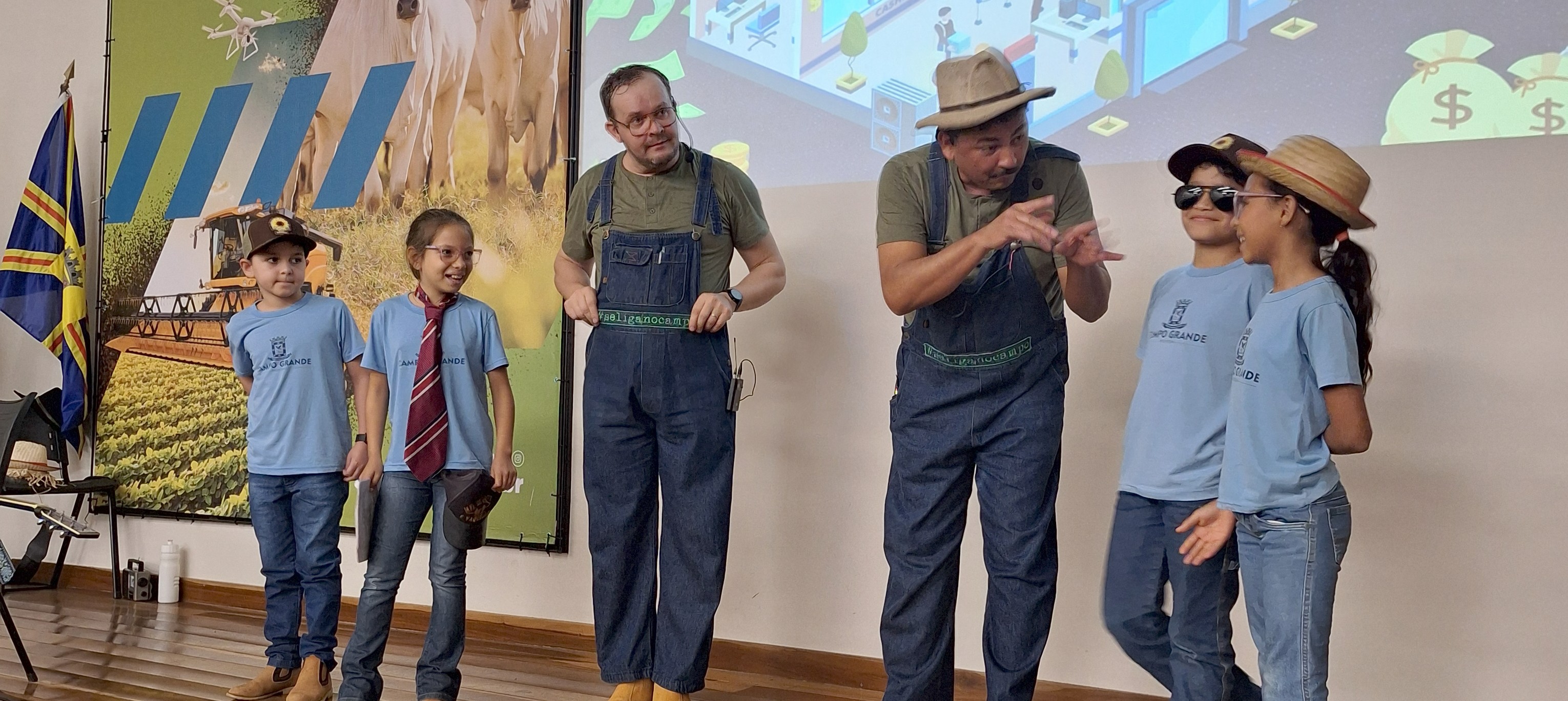 O evento também trouxe apresentações da peça teatral “Se Liga no Campo”, promovida pela Associação De Olho no Material Escolar. A peça abordou temas como a evolução da agricultura, práticas sustentáveis, consumo consciente e a relevância do agronegócio para o desenvolvimento da sociedade, sensibilizando o público de forma lúdica e educativa.